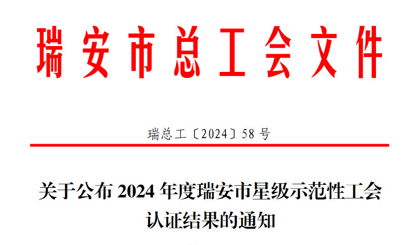 元旦刚过,华峰化学股份有限公司工会委员会喜获瑞安市“四星级示范性工会”称号,这份荣誉不仅是对华峰化学工会2024年度工作的肯定,更是激励工会组织在新的一年,借势发力,充分发挥员工与企业之间的纽带桥梁作用。