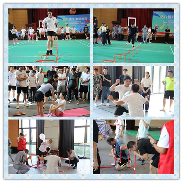 跳箱障碍物项目中,随着比赛开始的响令,第一位队员迅速通过各轮障碍,一跃而上跨过跳箱,成功折返与队友接力,矫健的身姿和默契的配合赢得观战选手的喝彩;双人仰卧起立项目考验着选手们的体力与耐力,选手们脚对脚、手握手,后仰俯身织成一条呼啸的波浪,短短的三分钟,成员们的脸上都留下了运动的汗水;在呼吸的力量趣味项目中,肺活量王者们鼓起腮帮猛吹,强劲的气息经过长长管道,快速吹破了各个气球,更有队伍创下了吹破25个气球的记录;球转乾坤项目,则最考验健身基础,选手们把双手放在头后,十指交叉,用身体互相对抗着球体,同时完成弓箭步下蹲动作,训练有素的队伍在本轮环节占据优势,新手队伍则在本环节稍显落后。